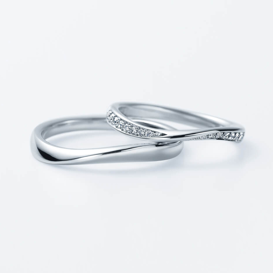 「男性はストレート、女性はウェーブ」のように男女で別々のデザインを選ぶカップルもいらっしゃいますが、お揃いでウェーブデザインの指輪にするのもよいでしょう。