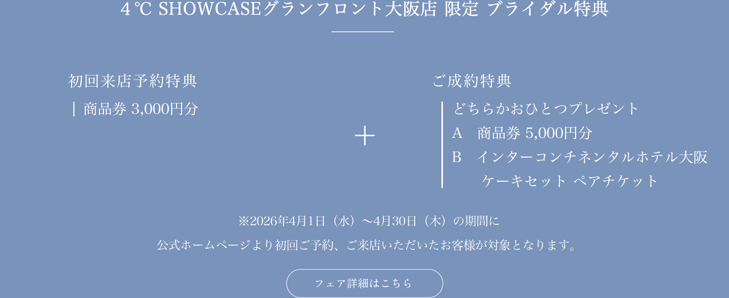 4℃のブライダルリングの中でもプレミアムな品揃えを誇る専門店。決意と愛の証であり、特別な一日にふさわしいブライダルリングに出逢えますように。