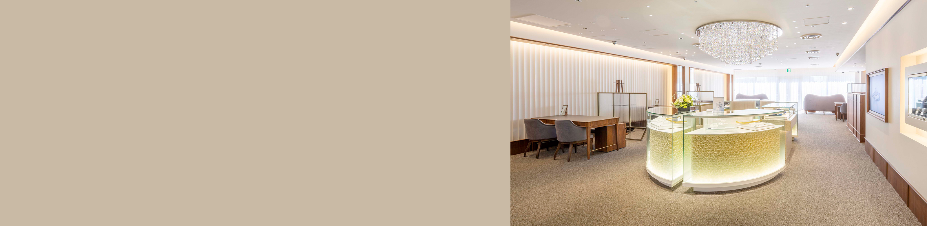 - 落ち着いた店内でブライダルアドバイザーが笑顔でおふたりをお出迎え